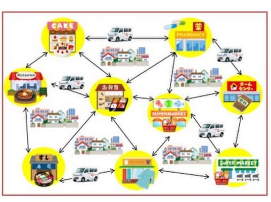 具体的には、「ラストワンマイル」の領域で地域内の依頼を集約し、AIを用いて最も高効率の配達スタッフへの業務指示と配送ルートを選択する「スパイダーデリバリー」を実現。配送効率を高めながら、配達費用の変動費化と削減効果が期待できる仕組みを構築した。