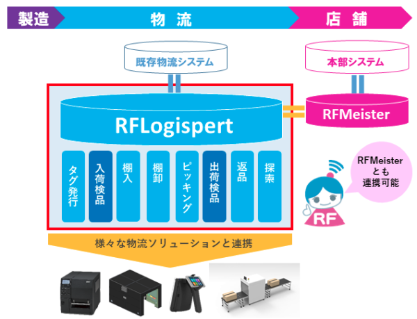 サービス・商品東芝テックは25日、物流センターの入出荷業務に対応したRFIDサーバー、RFIDハンディを操作する端末アプリをセットにしたRFIDパッケージシステム「RFロジスパート」の販売を開始した。
