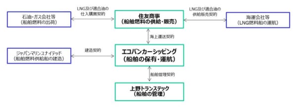 ロジスティクス住友商事は2月27日、横浜川崎国際港湾(横浜市西区)、上野トランステック(同市中区)と3社共同で設立したエコバンカーシッピングを通じ、ジャパンマリンユナイテッドとLNGバンカリング船の建造契約を交わしたと発表した。