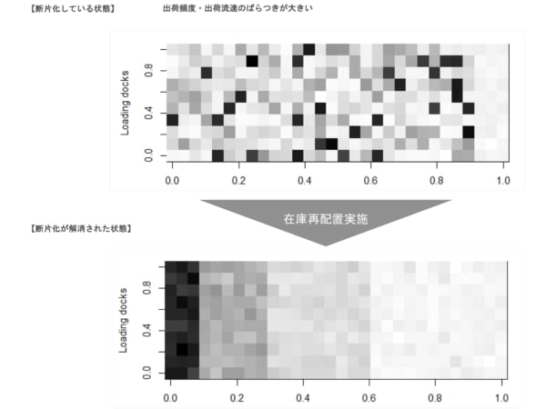 アルゴリズムで演算された精度の高い需要予測モデルや作業効率最適化モデルを活用することにより、「物流事業者が将来処理すべき物量や商品の種類を高い精度で予測する」「その予測を基に、作業者の物流施設内での歩数・作業効率を改善する商品配置を行う」「適正な商品配置のもと必要な作業員数と機械数を手配する」「予測できる物量を限られた輸配送トラックに積載する」ことができるようになる。