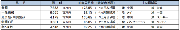 ■貿易額上位品目(出所:函館税関)