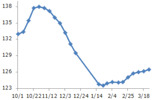 | 新潟 | 127.6 | 127.5 | -0.1 |