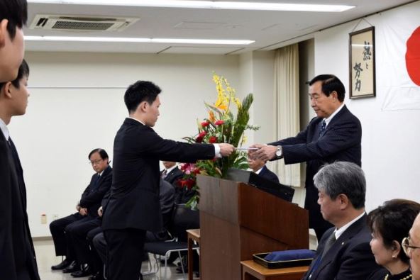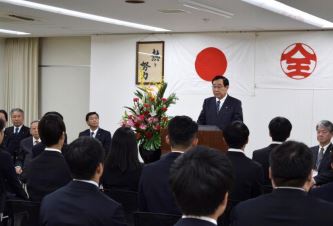入社した皆さんには、本年度からスタートする第7次中期経営計画の目標達成の翼を担ってくれるものと大いに期待している。「失敗を恐れず日々挑戦し続けること」「協力できる仲間をつくること」「積極的に自分を磨くこと」を念頭に置いて仕事に臨んでほしい。私たちと共に新たな歴史を築き上げていこう。丸全昭和運輸の浅井俊之社長