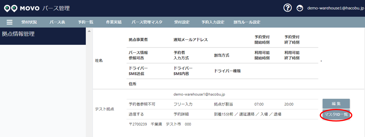 今回追加したのは「マスタIDダウンロード機能」で、バース管理マスタの拠点情報管理画面に「マスタID一覧」ボタンが追加され、マスターID情報をエクセルで一括ダウンロードできるようにした。