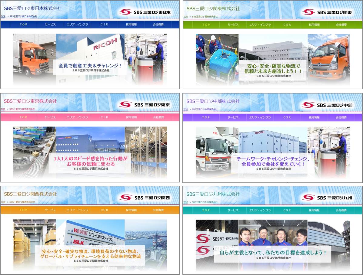 SBSリコーロジ傘下のSBS三愛ロジ東日本、SBS三愛ロジ関東、SBS三愛ロジ東京、SBS三愛ロジ中部、SBS三愛ロジ関西、SBS三愛ロジ九州――の6社が保有する施設やサービス内容、CSR活動などの情報を掲載するコンテンツを拡充し、デザインもSBSリコーロジのウェブサイト内にありながら、6社の独自サイト風にアレンジしたデザインを取り入れてリニューアルした。