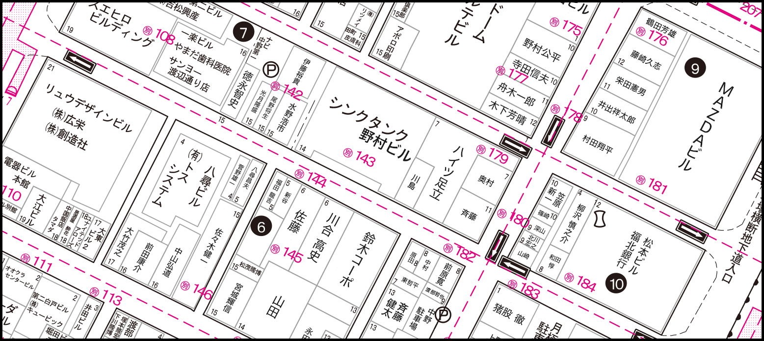 ▲個人名まで表示されるゼンリンの住宅地図(編集部註=表示されている建物名・個人名は架空です)