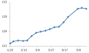 | 中国局 | 131.7 | 131.4 | -0.3 |