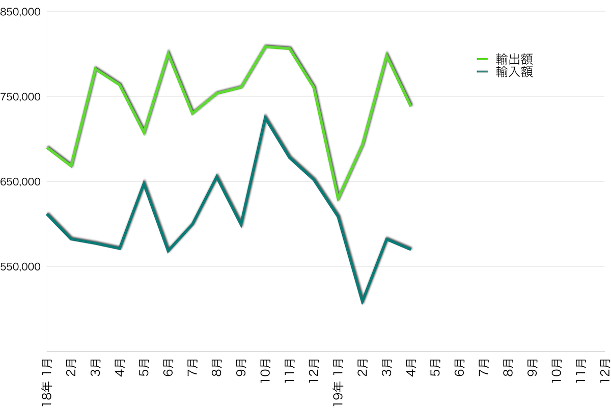 輸出相手国別の動向をみると、対アジア0.1%増(輸出額4444億円)、対中国0.5%増(1515億円)、対韓国12.8%減(1015億円)、対米国17.1%増(1205億円)、対EU20.3%減(653億円)などとなっており、EU向けと韓国向けのマイナスが目立つ。特に対韓国輸出は九州経済圏が全国の22%を占めているが、12か月連続で前年実績を割り込んだ。