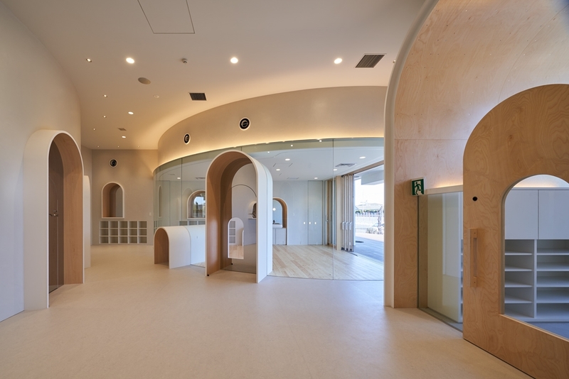 ESR市川ディストリビューションセンターに開設する託児所「バーンクラブ市川」は、木の素材を多く使用し、アーチ形に小さくくりぬかれた通路、滑り台、緑豊かな遊び場などを設計に盛り込んだ。テナント企業勤務者の5歳までの子どもを対象とし、運営はジョイサポに委ねる。