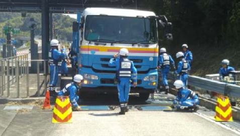 大型車の通行適正化に向けた中部地域連絡協議会では、違法な重量超過車両が道路構造物の劣化を加速させる主要因だとして取り組みを強化しており、6月6日14時から16時まで行われた今回の取り締まりには名古屋高速道路公社、中日本高速道路の車限隊も参画した。
