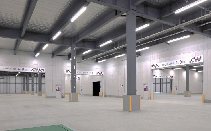 倉庫部分は外壁に金属断熱サンドイッチパネルを採用し、庫内有効高さは各階6メートル以上を確保。床荷重は1平方メートルあたり1.5トン、倉庫内の平均照度も300ルクス以上とした。2.5トンフォークリフトの走行にも対応している。