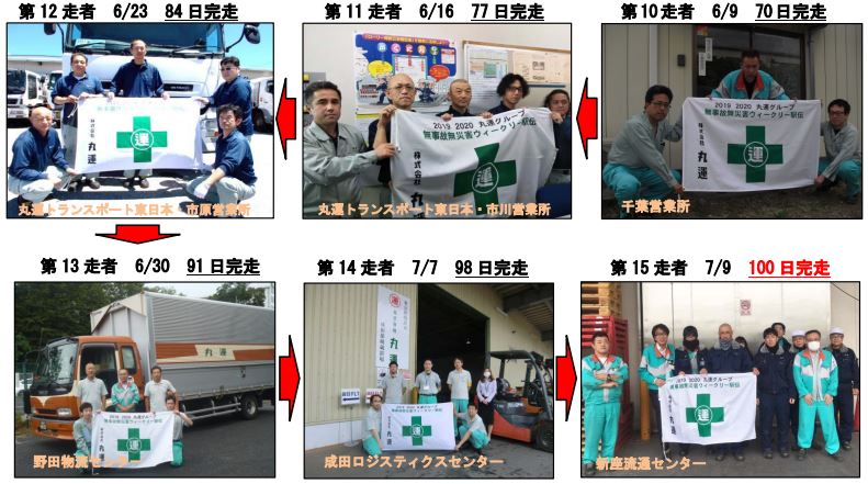 環境・CSR丸運は10日、4月1日から実施している「丸運グループ無事故無災害ウィークリー駅伝」が15事業所にまわり、100日完走を達成したと発表した。「‐ウィークリー駅伝」はグループの日常的な安全意識を高めることを目的に実施している安全活動で、各事業所が交代で1週間ずつ実施。第15走者の「新座流通センター」にたすきが渡ったことで100日完走を達成した。ゴールは東京2020大会の開催日を設定している。