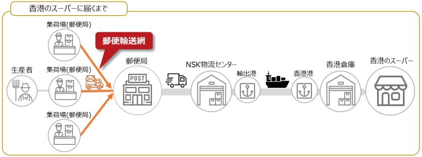 今回新しく始めるのは、農業総合研究所の農産物流通システム「農家の直売所」と日本郵便の物流による「産直」流通を海外に広げるもので、両社の提携で実現した郵便局内の集荷場に集荷された農産物を国内のスーパーマーケットではなく、香港のスーパーマーケットや外食産業に輸出を行うもの。世界市場は、香港で人気のある「安心・安全・おいしい」日本産農産物を香港に輸出する事業を行っている。