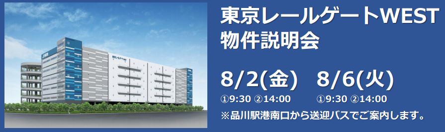 イベント日本貨物鉄道(JR貨物)は8月2日・6日に、2020年2月末竣工のマルチテナント型物流施設「東京レールゲートWEST」の物件説明会を開催する。全4回の説明会では、現地の案内や建物の見学などを受けられる。定員は各回先着で20人程度で、現在は8月2日9時30分からの回に空きがあるという。