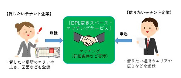 サービス・商品大和ハウス工業は24日、同社が開発したマルチテナント型物流施設の入居者向けに、空きスペースの貸したい側と借りたい側をマッチングするシステム「DPL空きスペース・マッチングサービス」を24日から順次導入する、と発表した。