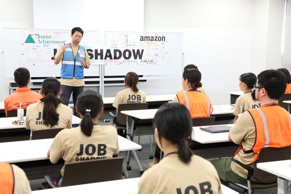 同市で5回目の開催となるジョブシャドウは、全2回のプログラムで構成され、1回目の事前学習プログラムでは、同社の従業員が講師となってグローバルビジネスや従業員全員がリーダーとして行動するための指針を学んだほか、プログラミングソフトを使って同社の物流ロボット「アマゾンロボティクス」について学習した。