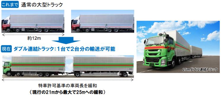 ダブル連結トラック本格導入、許可基準25mまで緩和 19/01/29