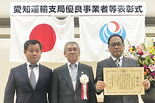 中部エリアを管轄する名古屋営業所が表彰された「安全性優良事業所支局長表彰」は国土交通省が実施する全性優良事業所の認定(Gマーク)を連続で10年以上取得している事業所が対象で、支局長表彰の受賞は、昨年度の北関東営業所に続き2回目。