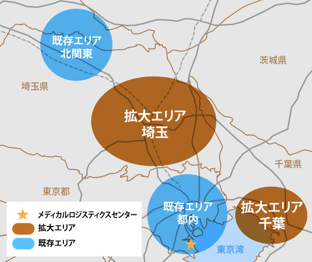 18年3月から北関東で、同年9月から東京都内で運用を開始した「メディカルライナー」が医療機器メーカーと医療機器ディーラーの双方から高い評価を得ていることを背景に、双方の要望に応えるかたちでディーラーの拠点が集まる千葉市とさいたま市を中心に配送エリアを拡大することを決めたという。