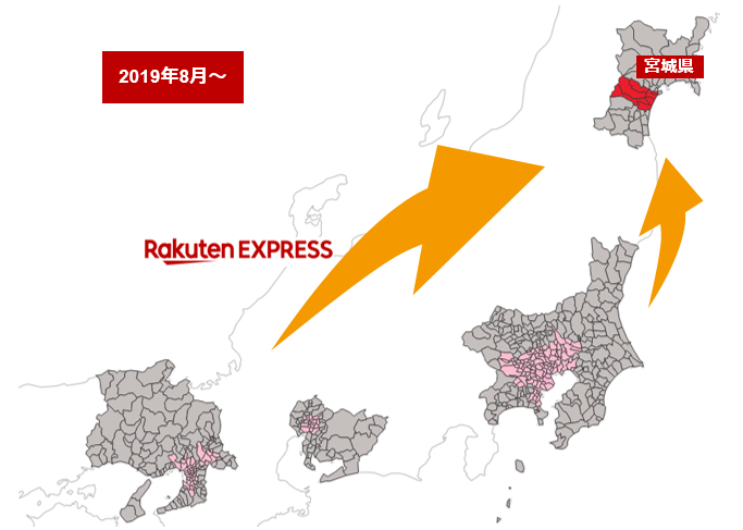 国内楽天はこのほど、同社の配送サービス「楽天エクスプレス」の配送先として利用できるエリアを宮城県仙台市、名取市、多賀城市に拡大、東北地方に初めて進出した。