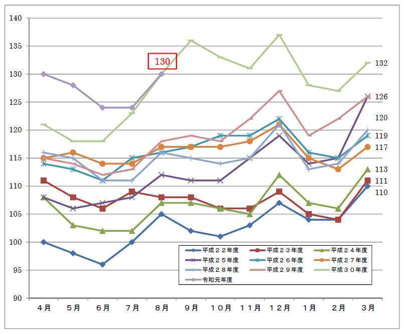 調査・データ全日本トラック協会(全ト協)と日本貨物運送協同組合連合会(日貨協連)が6日に公表した求荷求車ネットワーク「WebKIT」(ウェブキット)の2019年8月の成約運賃指数は、前月比6ポイント増、前年同月並みの130となった。