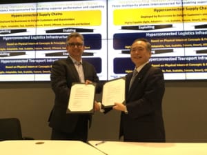 ▲ ジョージア工科大学フィジカルインターネットセンターのブノア・モントルイユ教授(左)とヤマトグループ総合研究所の木川眞理事長(右)