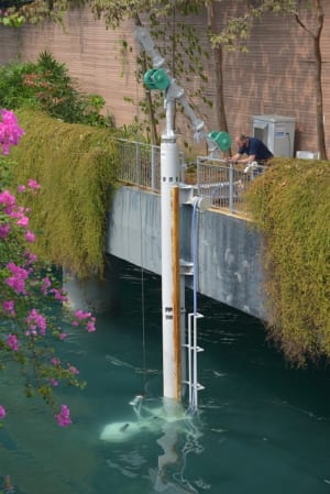 実験は17日からシンガポール島とセントーサ島をつなぐ「セントーサ・ボードウォーク」で行い、橋脚部に取り付