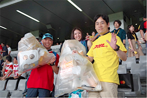 ▲東京スタジアムでボランティア活動する社員(出所:DHL)